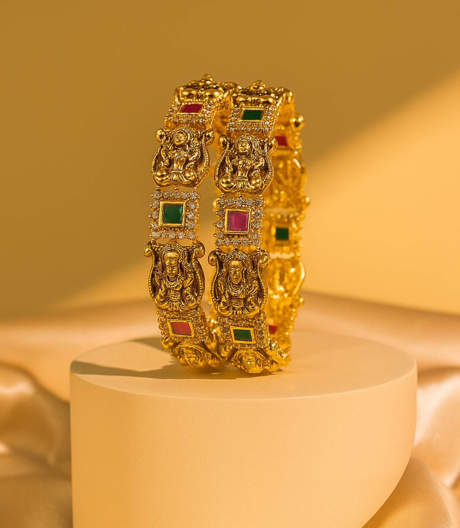 Our heritage-inspired South Indian jewellery collection includes antique vaddanam, traditional vanki, glass bangles, and goddess Lakshmi jewellery, making it perfect for brides and festive occasions.