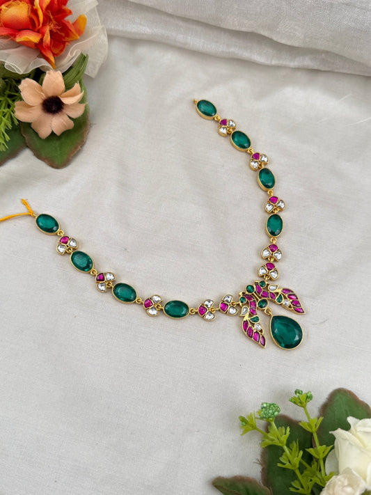Luxurious Jadau Kundan Peacock Mid Long Necklace Set 570 - Mahilas